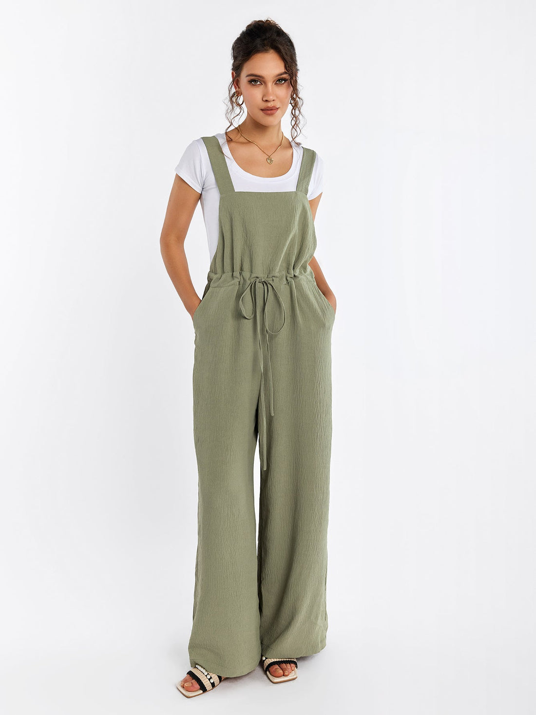Drawstring Adjustable Button Back Pocket Jumpsuit