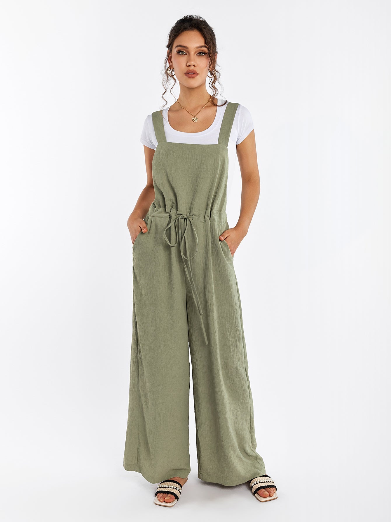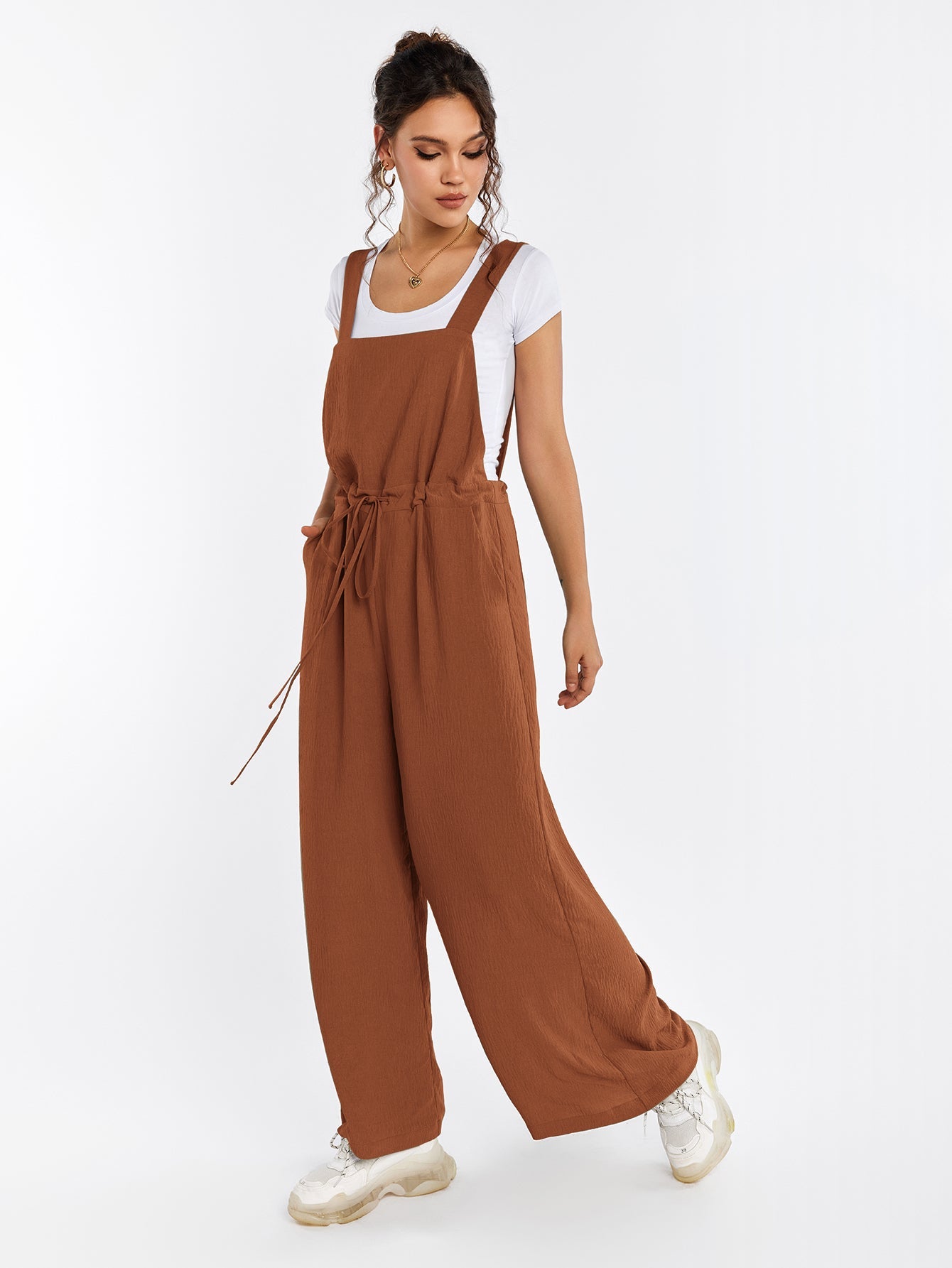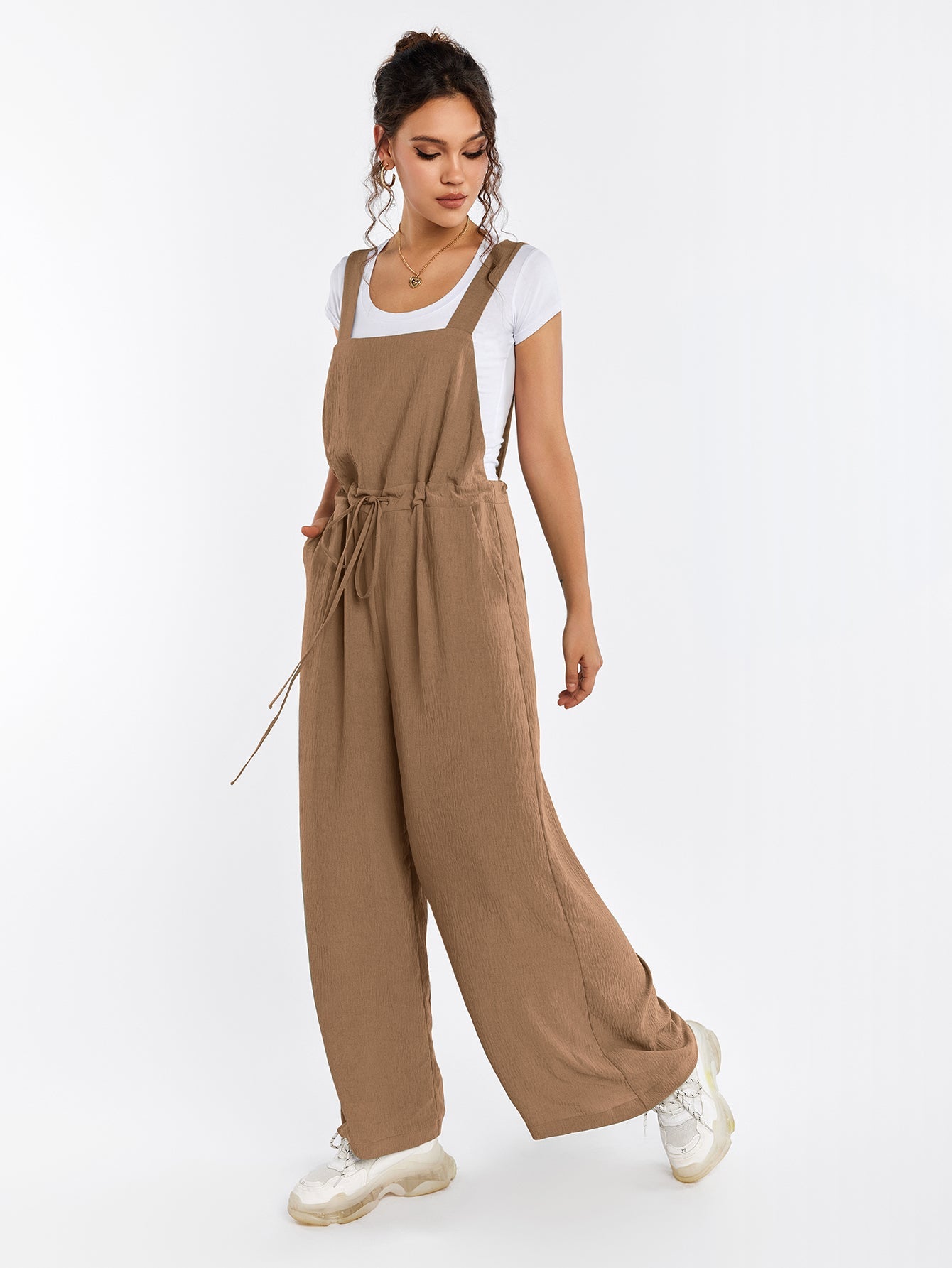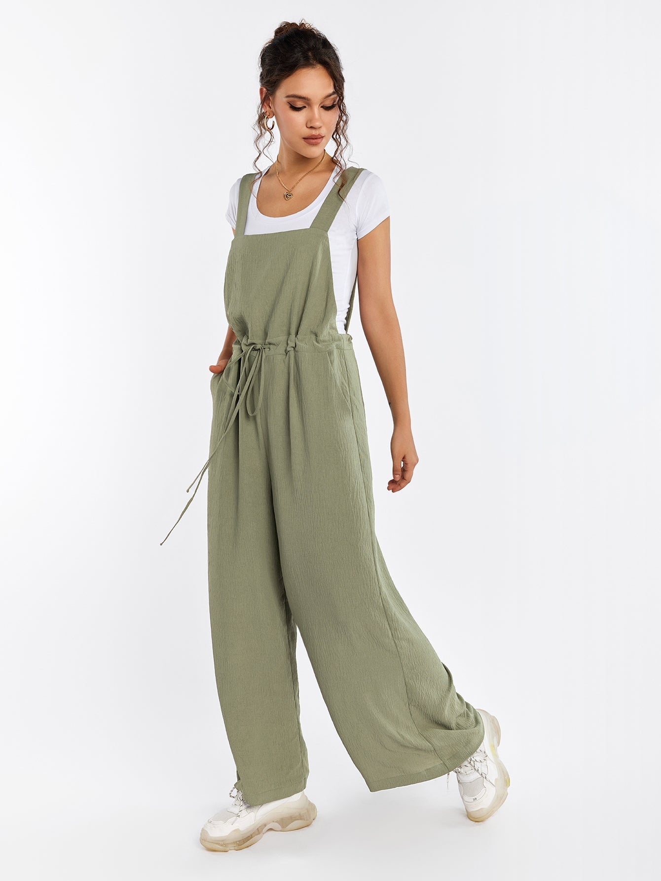 Drawstring Adjustable Button Back Pocket Jumpsuit