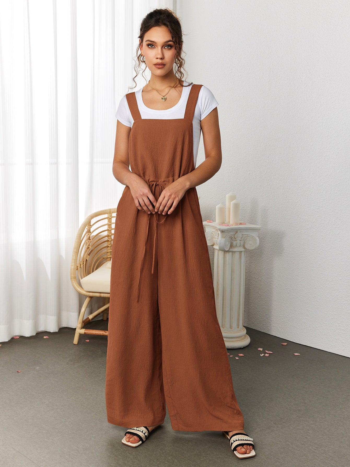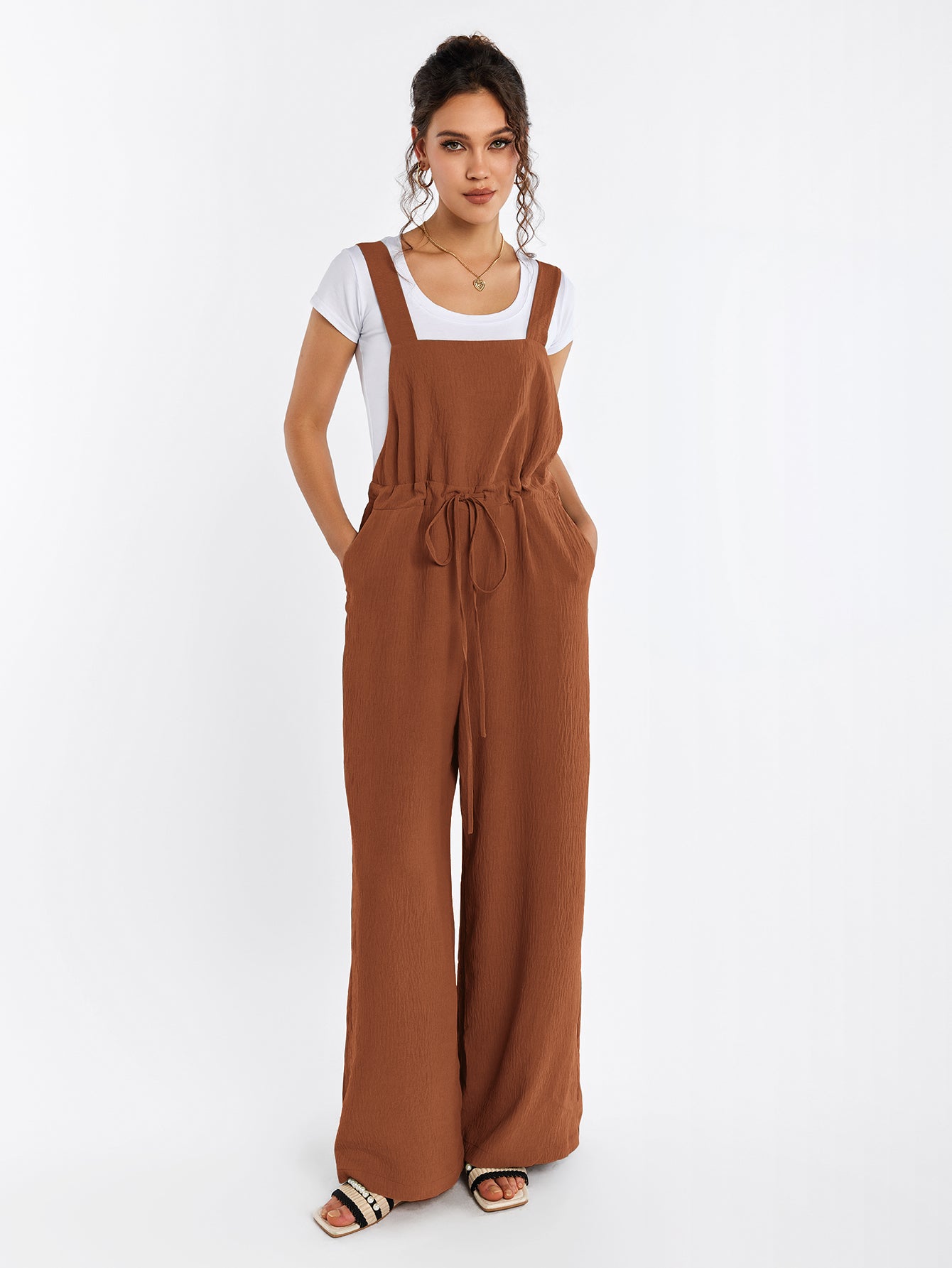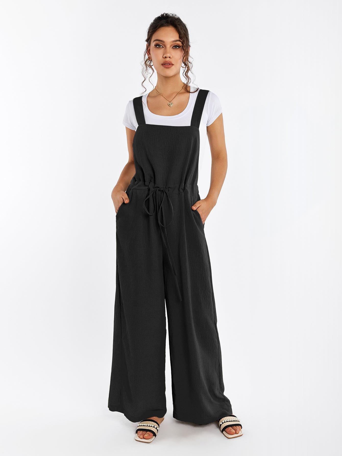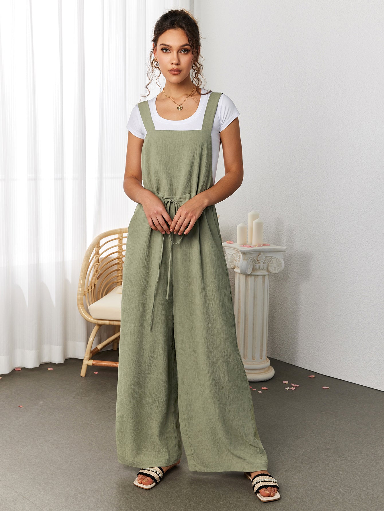 Drawstring Adjustable Button Back Pocket Jumpsuit