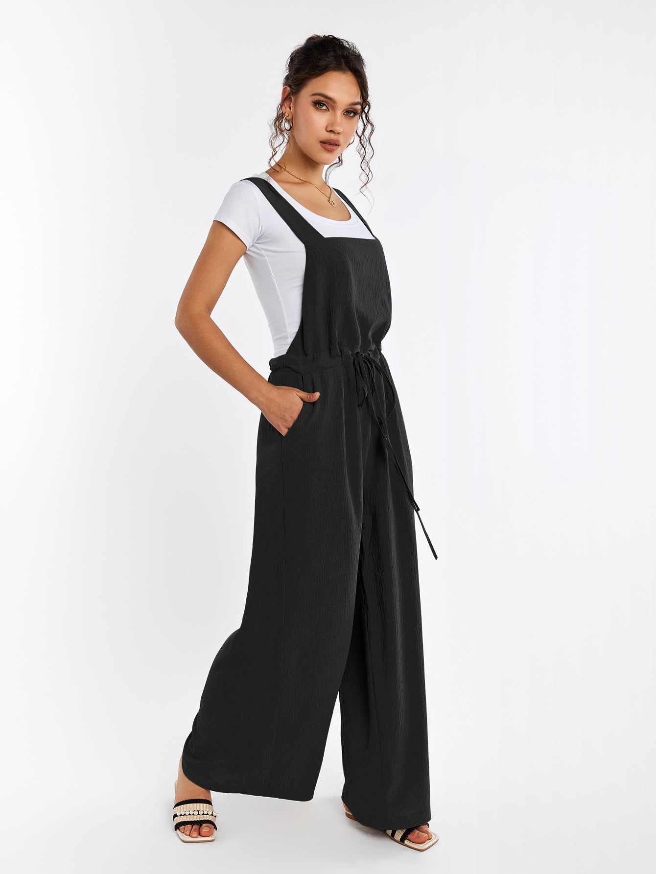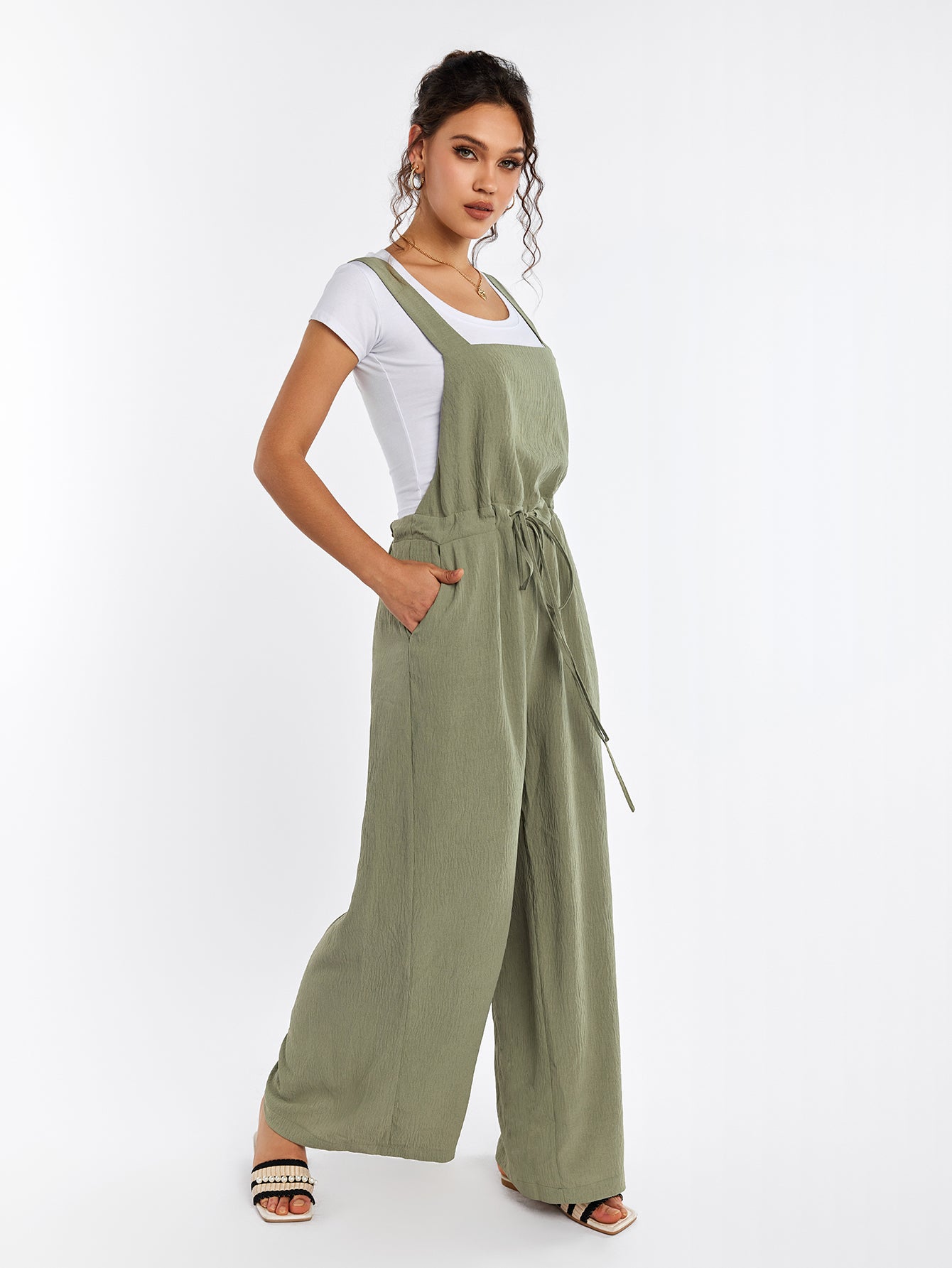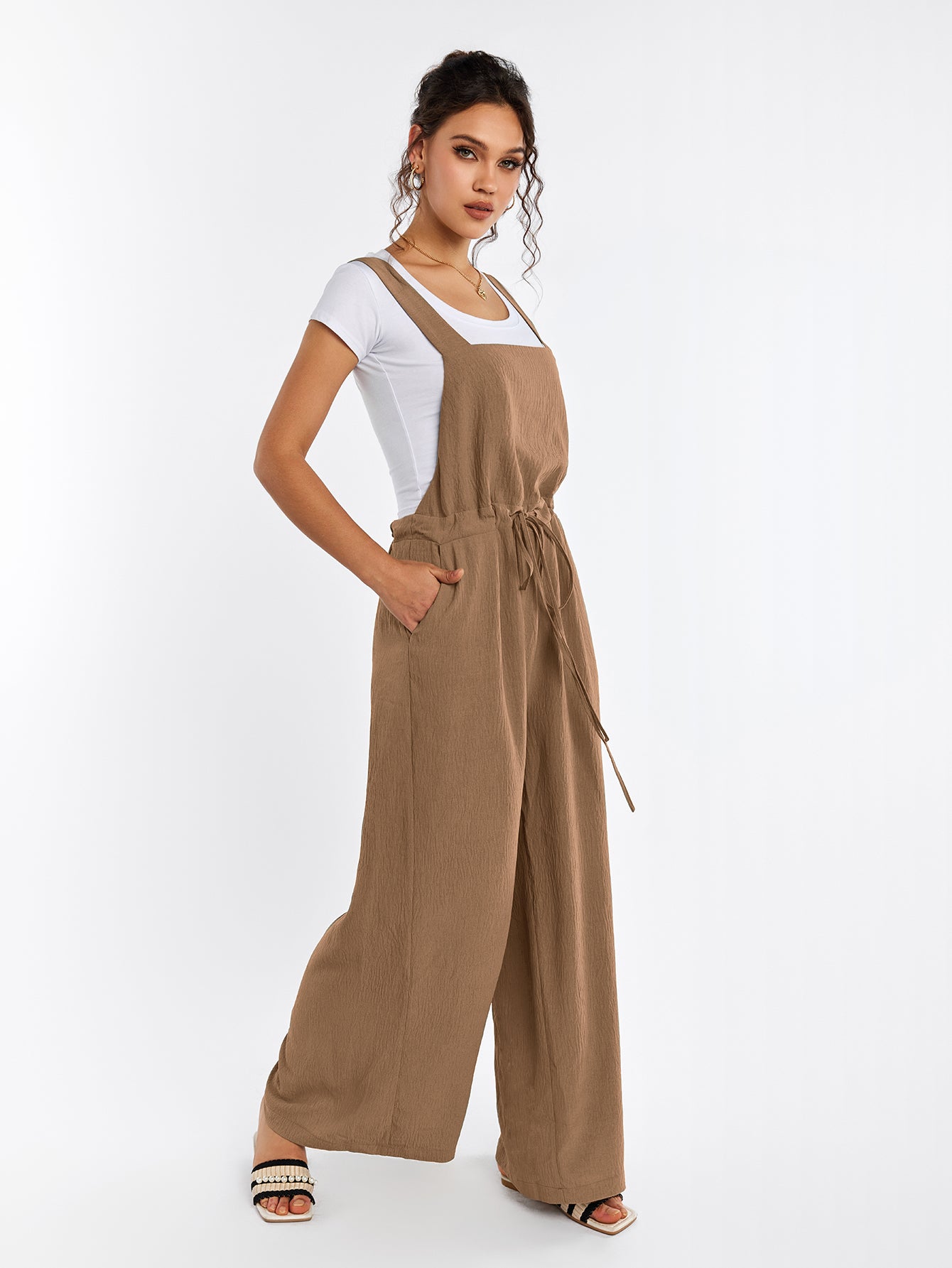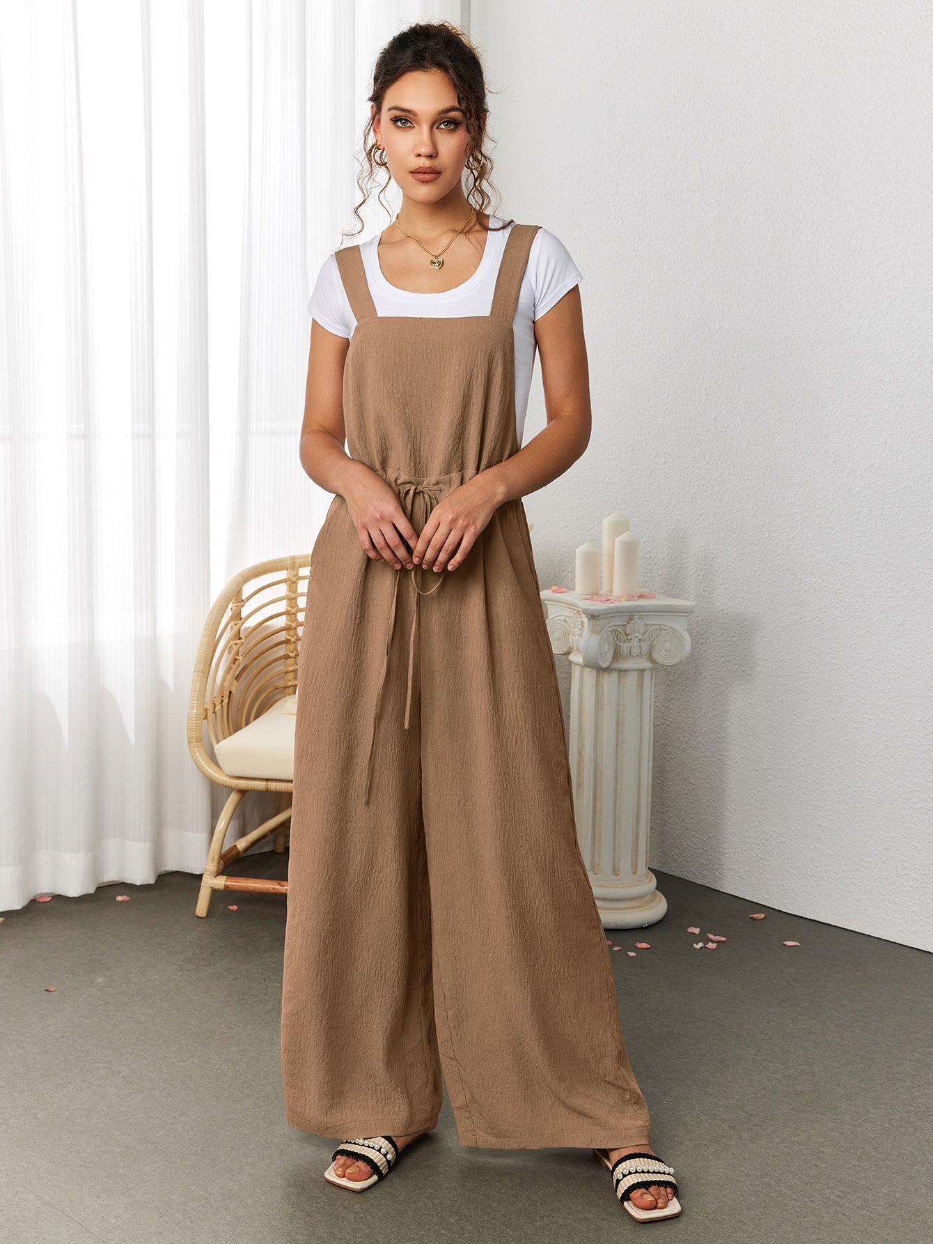 Drawstring Adjustable Button Back Pocket Jumpsuit