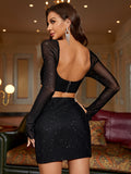 Glitter Long Sleeve Ruched Top&Bodycon Skirt