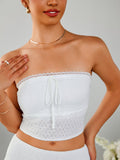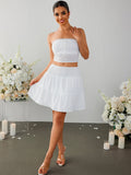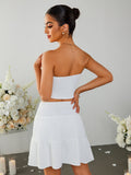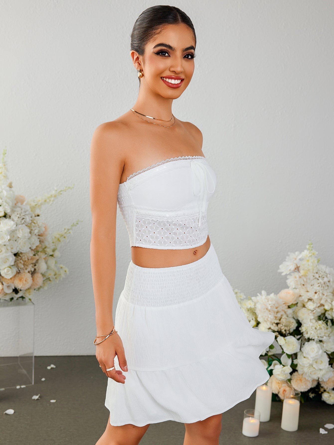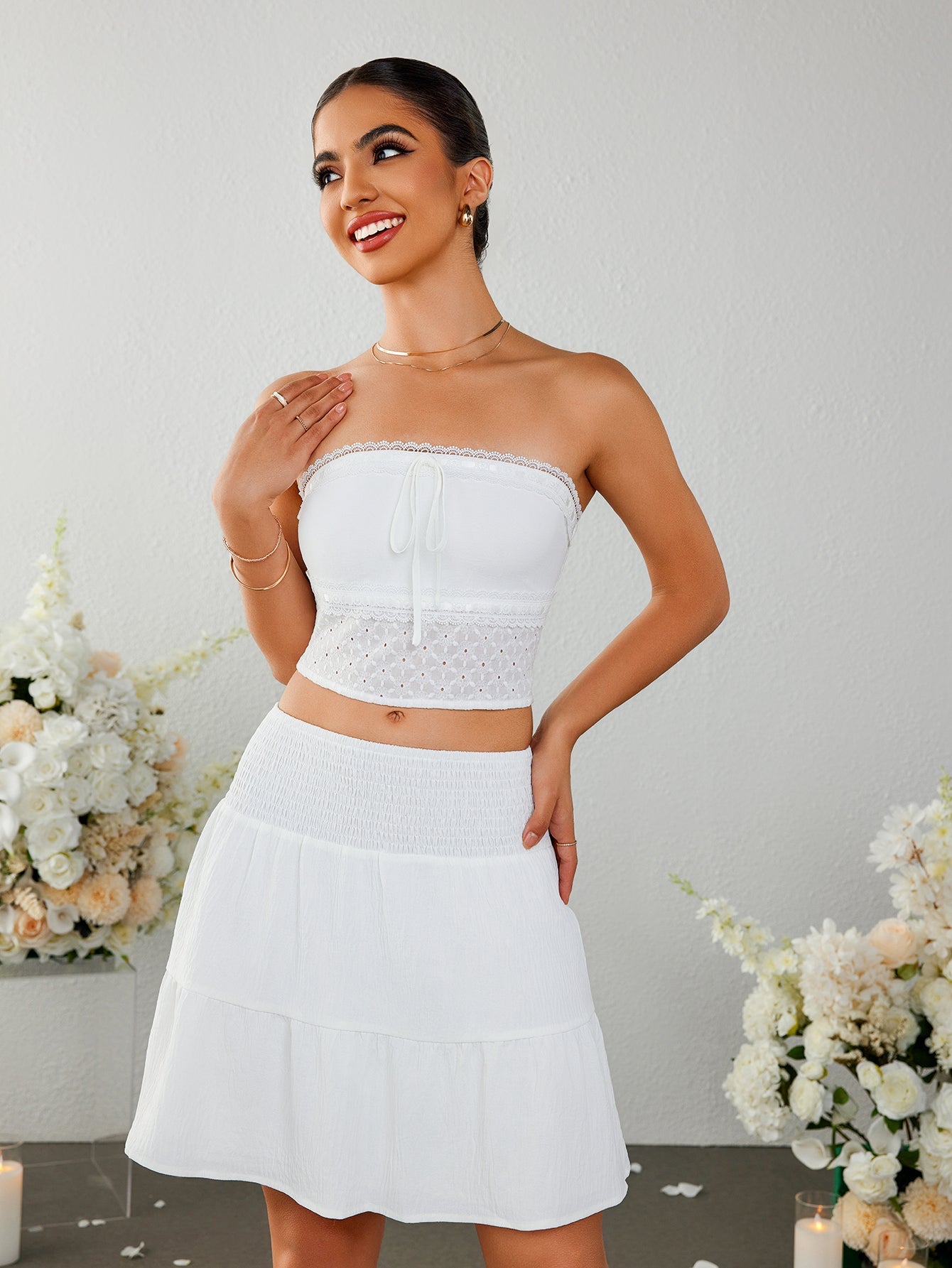 Lace Trim Tie Front Ruffle Tube Top&Ruffle Flared Hem Skirt