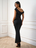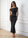 One Shoulder Draped Tie Backless Top&Ruched Bodycon Set