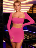 Square Neck Crop Top & Slit Hem Bodycon Skirt
