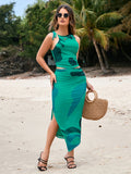 Tie Mesh Print Vest&Ruched Asymmetrical Split Hem Skirt